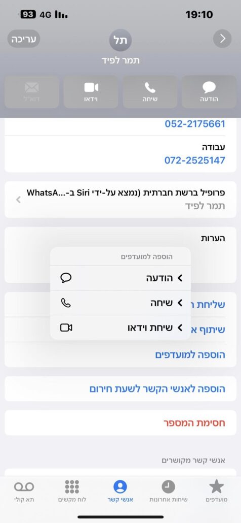 5)אם תלחצו על מועדפים תראו את האיש קשר שבחרתם להכניס למועדפים