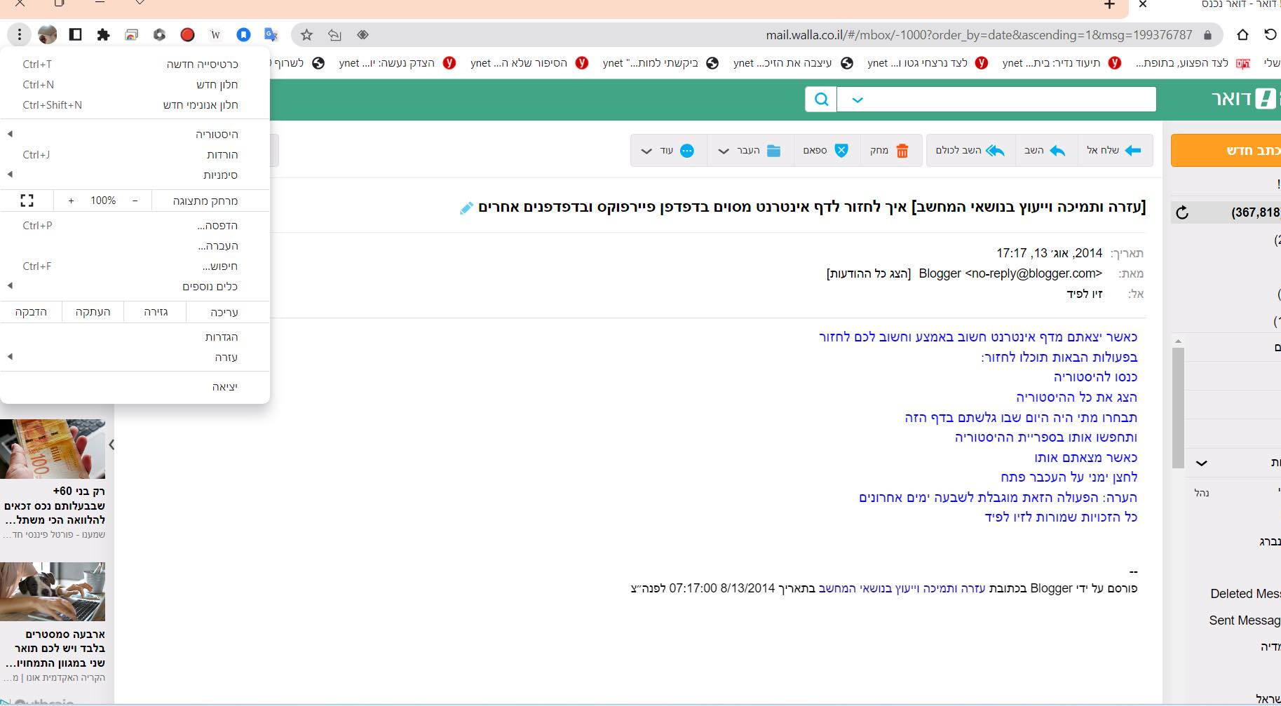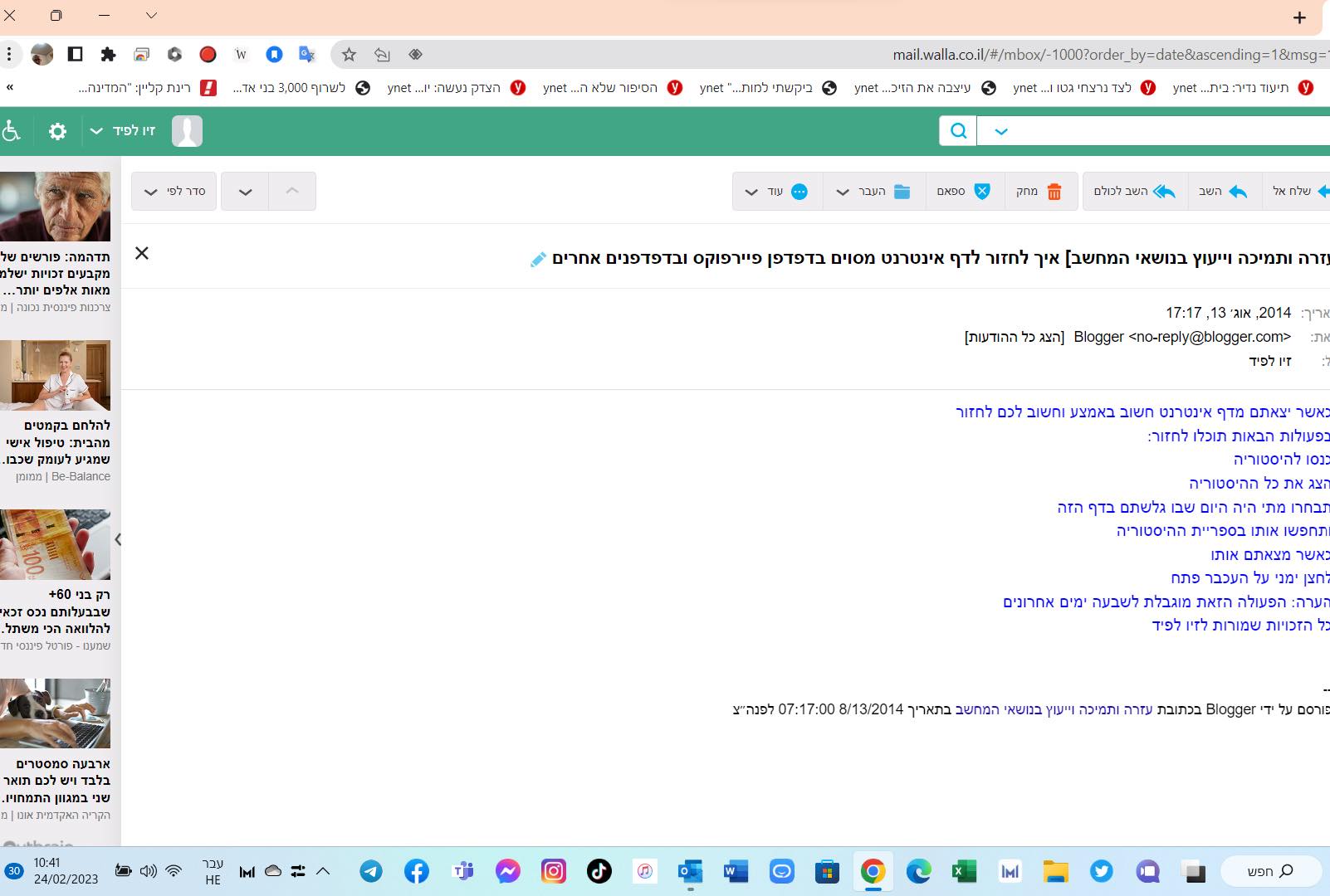 איך ניתן לחזור לאתר אינטרנט שגלשנו לפני כמה ימים