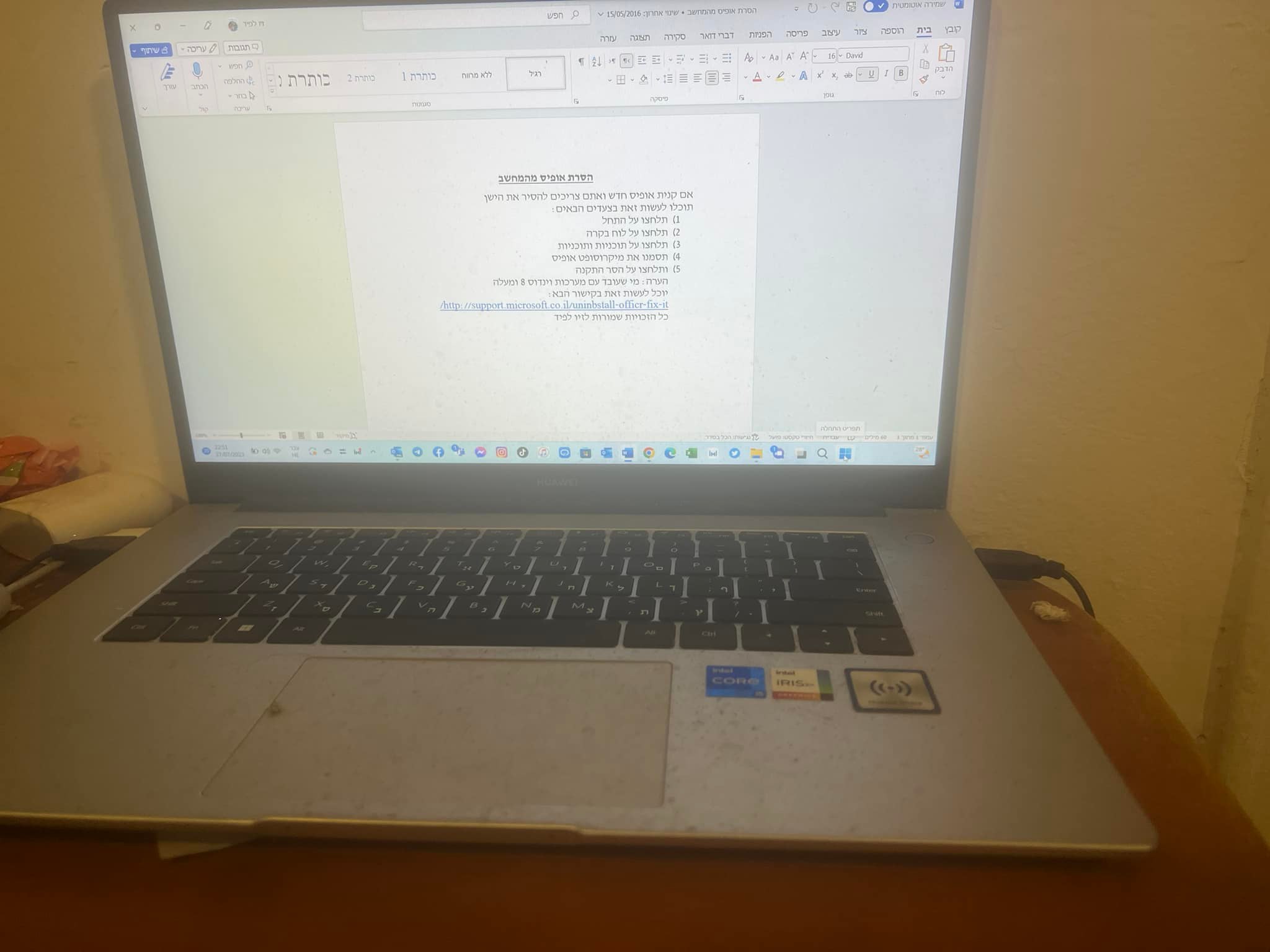 הסרת אופיס במחשב