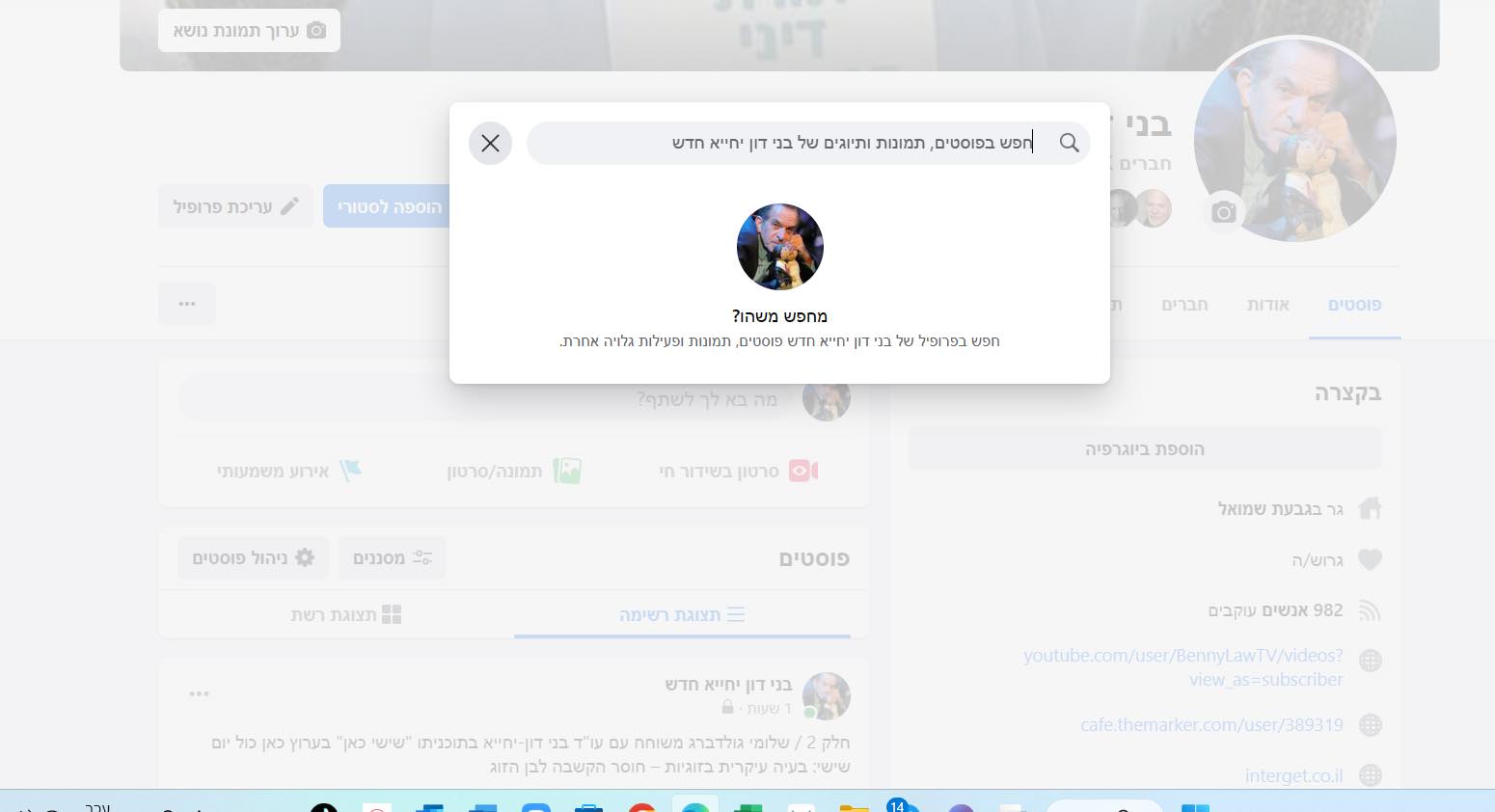 חיפוש דברים ישנים בפרופיל בפייסבוק