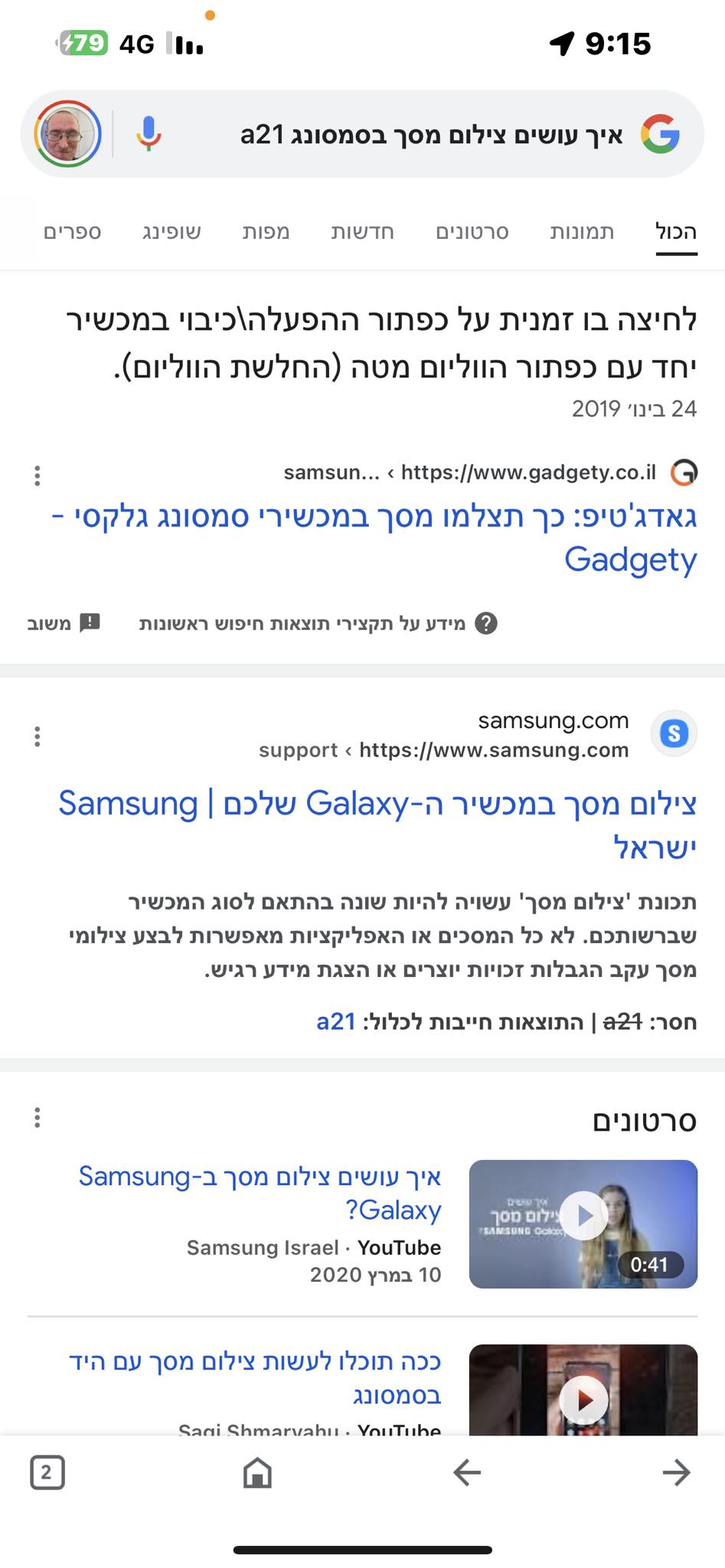 צילום מסך בסמסונג a23