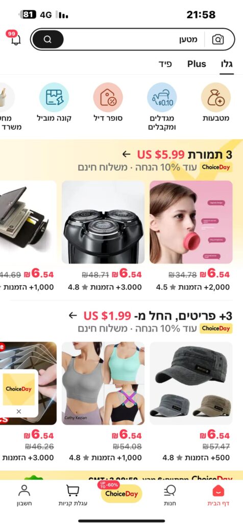1)תיכנסו לאתר או לאפליקציה של אלי אקספרס